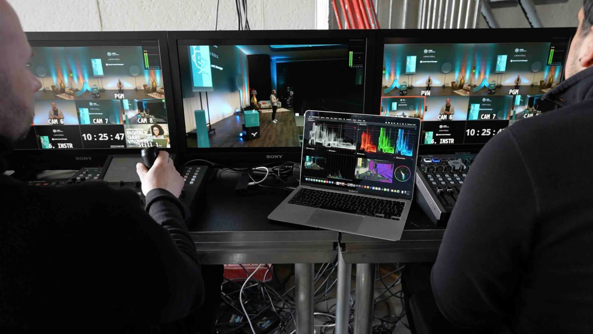 Er is personeel aanwezig ter ondersteuning van het evenement en de apparatuur.