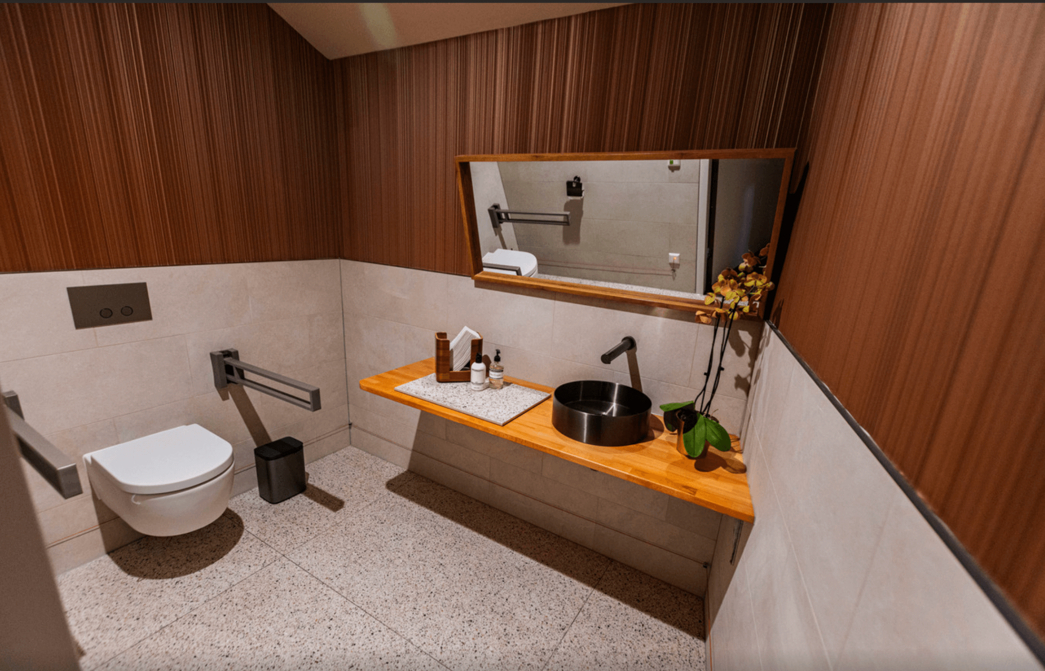MIVA-toiletten zijn vaak anders en minder aantrekkelijk ingericht, maar wij hebben dit uniek opgezet zodat alles van hetzelfde kwaliteitsniveau is, ongeacht je beperking.Mocht u specifieke behoeften of vragen hebben over onze toegankelijkheidsvoorzieningen, aarzel dan niet om contact met ons op te nemen.